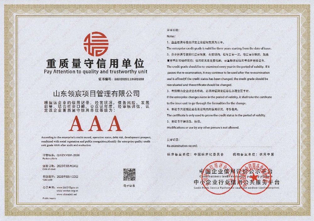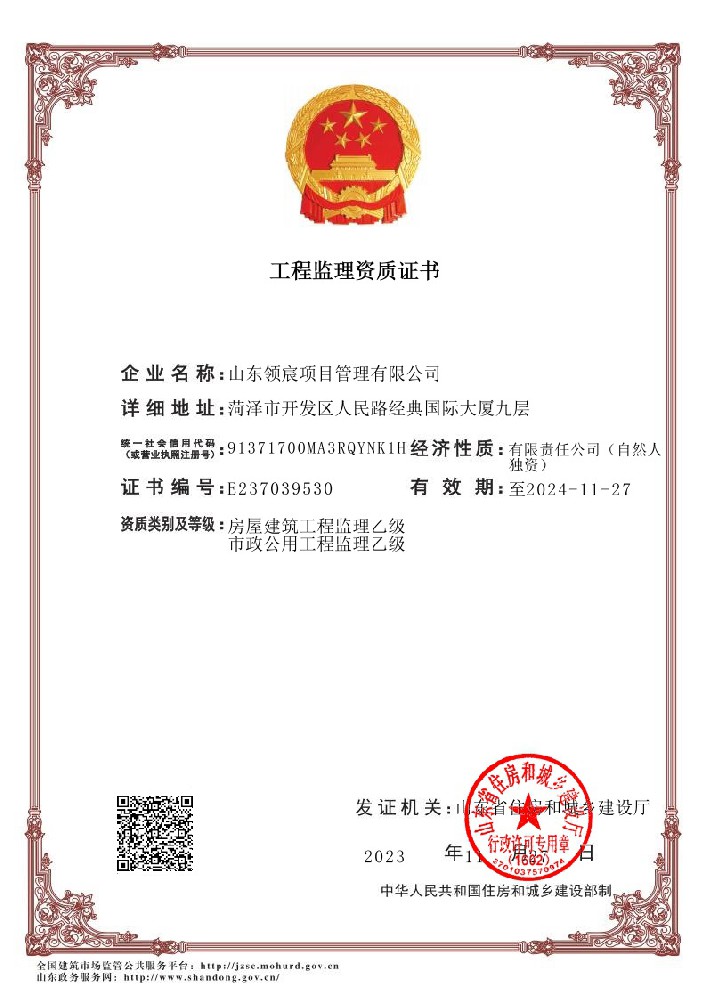 山東領(lǐng)宸項目管理有限公司是一家以全過程工程咨詢?yōu)楹诵牡淖稍兎?wù)公司,本公司現(xiàn)具備工程造價咨詢乙級資質(zhì),房屋建筑工程、市政工程監(jiān)理乙級資質(zhì)和招標(biāo)代理備案。公司擁有專業(yè)的工作團隊及豐富的行業(yè)經(jīng)驗,在行業(yè)領(lǐng)域內(nèi)具有雄厚的實力,企業(yè)管理人員擁有行業(yè)20年以上的資深行業(yè)工作經(jīng)驗。公司現(xiàn)有專業(yè)技術(shù)人員50余人,具有一級注冊造價工程師、注冊監(jiān)理工程師、一級注冊建造師、二級注冊建造師、招標(biāo)師等工程類國家注冊執(zhí)業(yè)資格證書人員合計30余人以及高級工程師3人,持證上崗率達到90%......